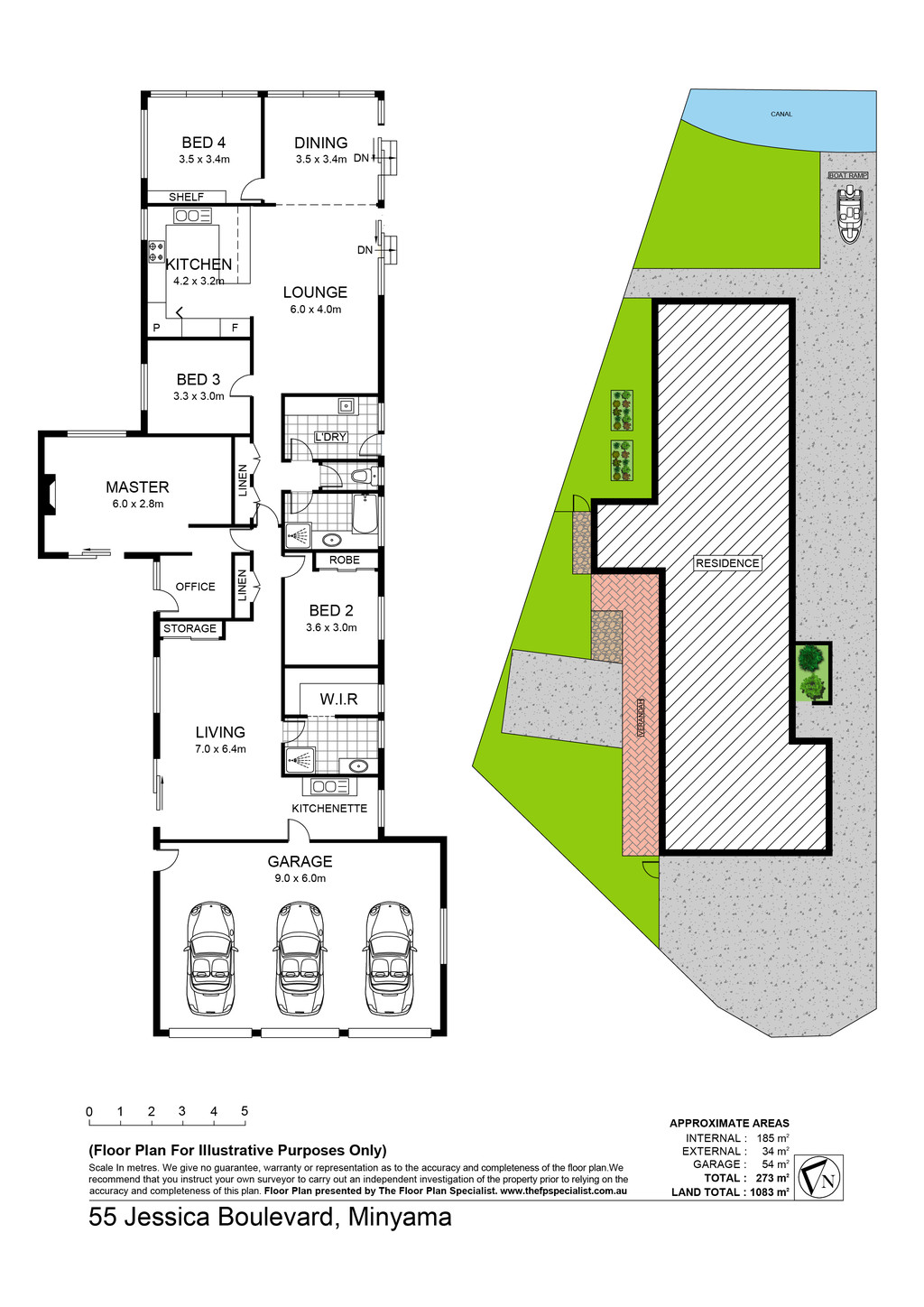 The home itself is of solid double-brick construction, complete with four bedrooms, office, two bathrooms, separate living areas, kitchen plus kitchenette, laundry, 3-car lock up garage, plus side access for a boat/caravan/trailer, and a boat ramp.
