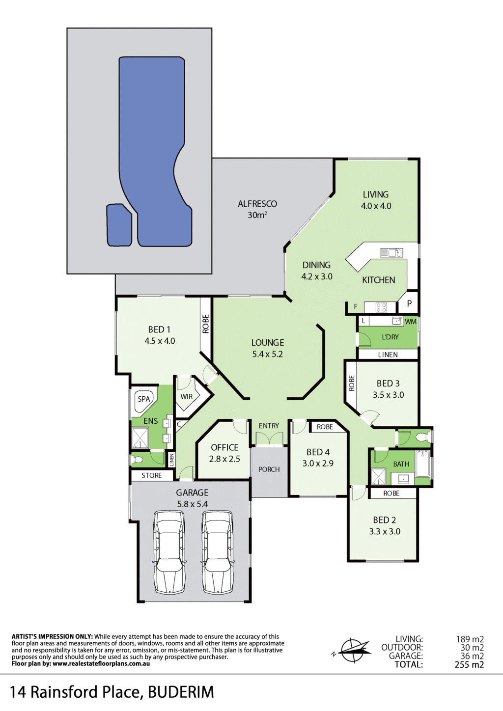 Presentation shines, and features include: elegant double doored entry foyer, Caesarstone benches throughout, air-conditioning in family/kitchen area, ceiling fans throughout, security screen doors to alfresco, stainless steel appliances, LED lighting throughout, skylight on patio, direct access to patio from master, lock-up garden shed, and a fenced flat grassy area for the children to play. There is also a green reserve directly on the northern side enhancing privacy.