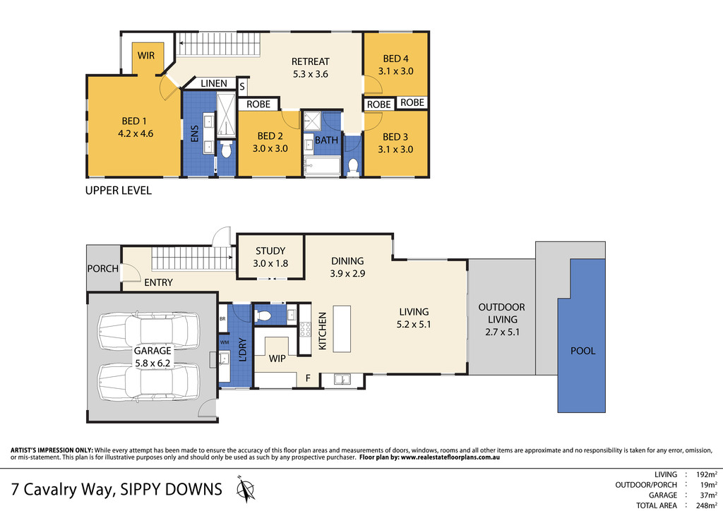 The second level has 4 spacious bedrooms, consisting of the huge master suite with its own walk in robe, sitting area and designer ensuite with double vanity, mixer taps and stone bench top. The three other bedrooms are queen size, all with built in mirrored robes. The Main bathroom consists of an extra-large bathtub, semi frame-less shower, stone bench top with mixer taps and a separate toilet. This floor also has an additional living area/kids retreat, 3 door mirrored linen cupboard, and laundry chute with an extra storage area.