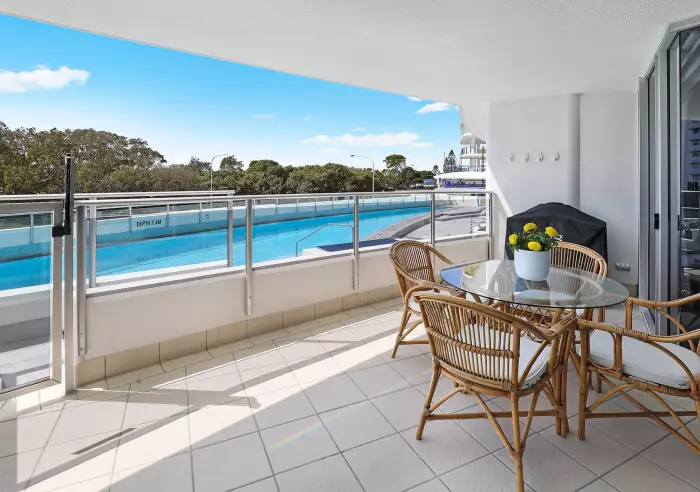 Be welcomed by sunlit, open-plan living zones that flow seamlessly to your balcony with direct pool access. Two spacious bedrooms, including a master suite with sleek ensuite and built-in storage, offer privacy and comfort. Two designer bathrooms with high-quality fixtures and contemporary styling.