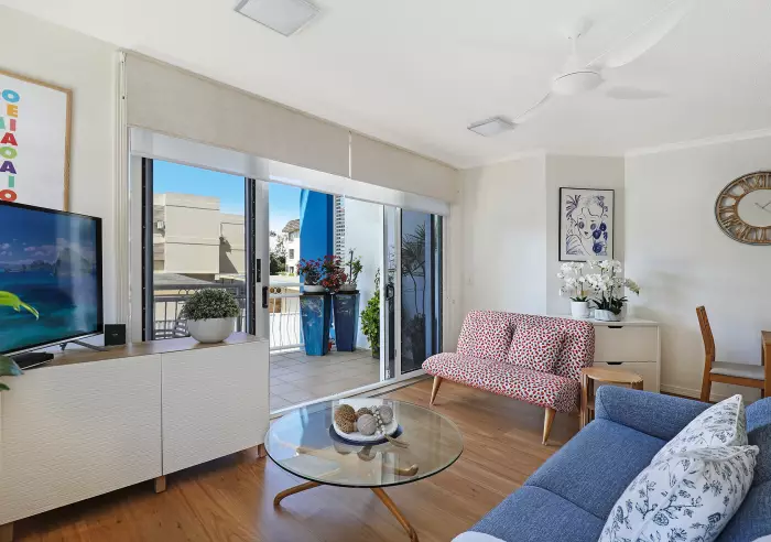 Discover the epitome of coastal charm with this excellent one-bedroom unit, a treasure for investors and ideal for those seeking to downsize without compromising on quality or location. Nestled within the boutique 'Myconos' complex, this gem is perfectly poised to offer a life of convenience and beachside bliss.