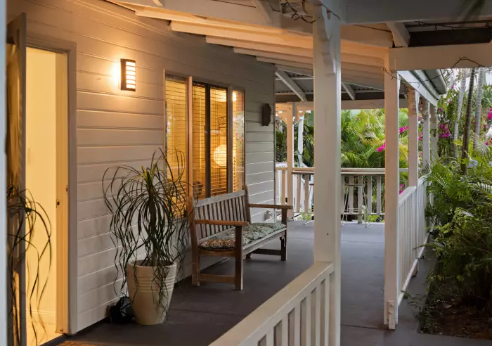 The grounds are shaped by lush tropical gardens, inviting decks, and tranquil outdoor spaces made for entertaining, gathering, or simply pausing in quiet reflection. Two garden sheds add practicality to the charm, ensuring the home functions as beautifully as it feels.