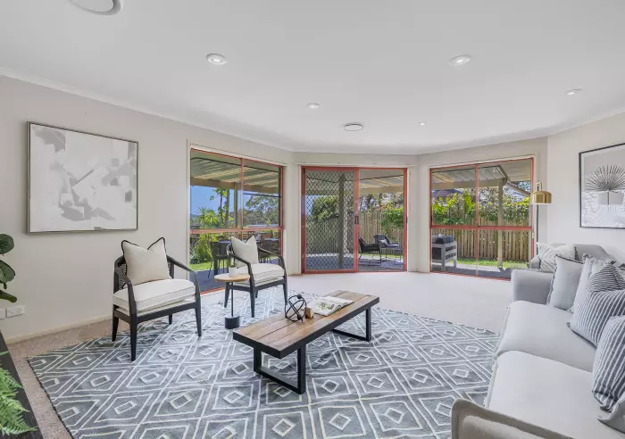 Tucked away in a private, leafy enclave of just five homes, this elevated 799m² sanctuary enjoys sweeping north-east views with ocean glimpses and beautiful outlooks to Mount Coolum and Mount Ninderry. It's a peaceful, single-level family retreat in one of Buderim's most desirable pockets.