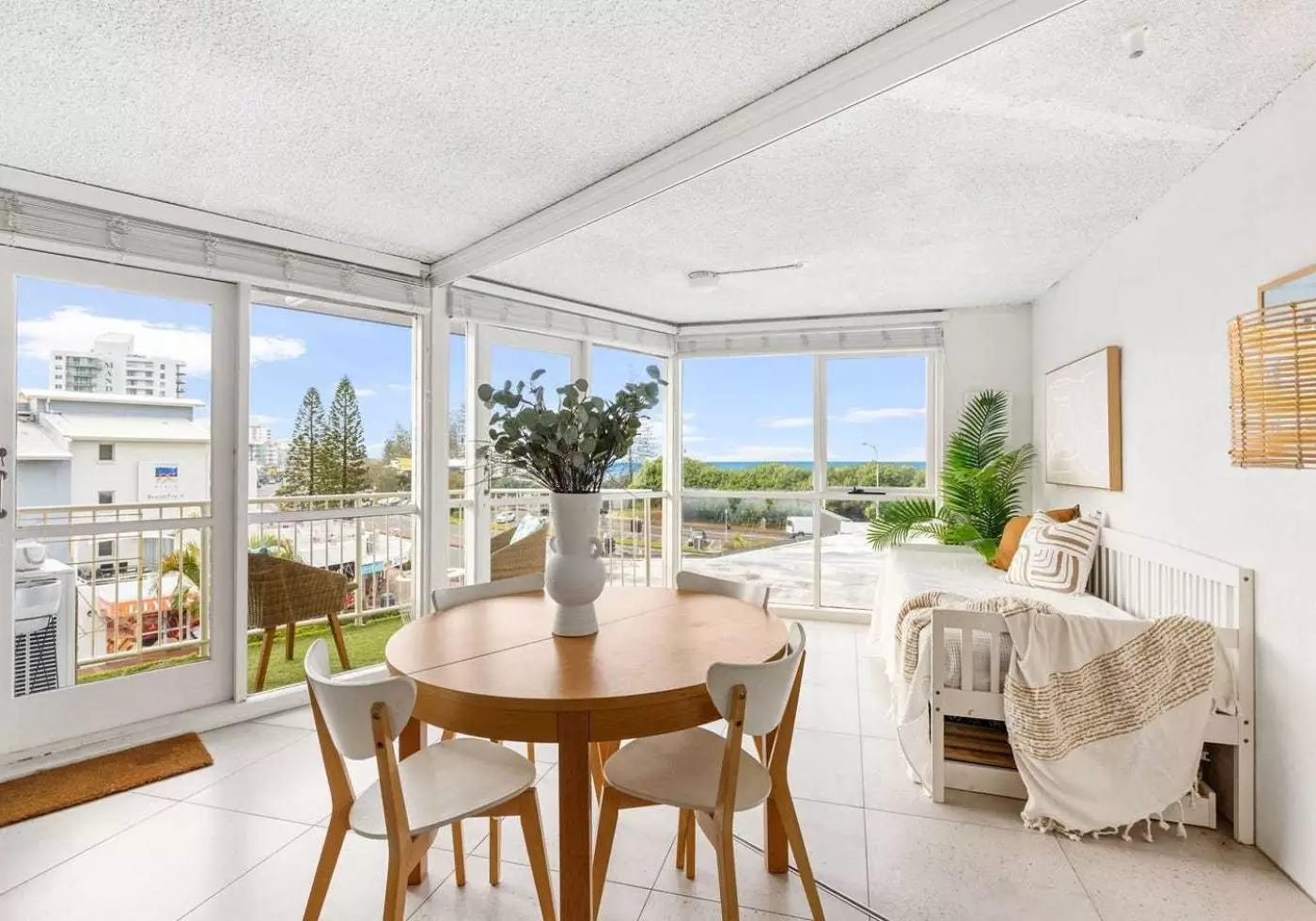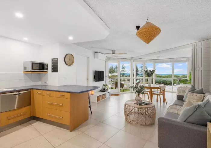 The apartment features a freshly renovated bathroom and laundry, generous natural light throughout, and a relaxed open-plan layout designed to maximise the ocean aspect. Both bedrooms enjoy uninterrupted water views, providing the perfect backdrop for an easy holiday atmosphere year-round.