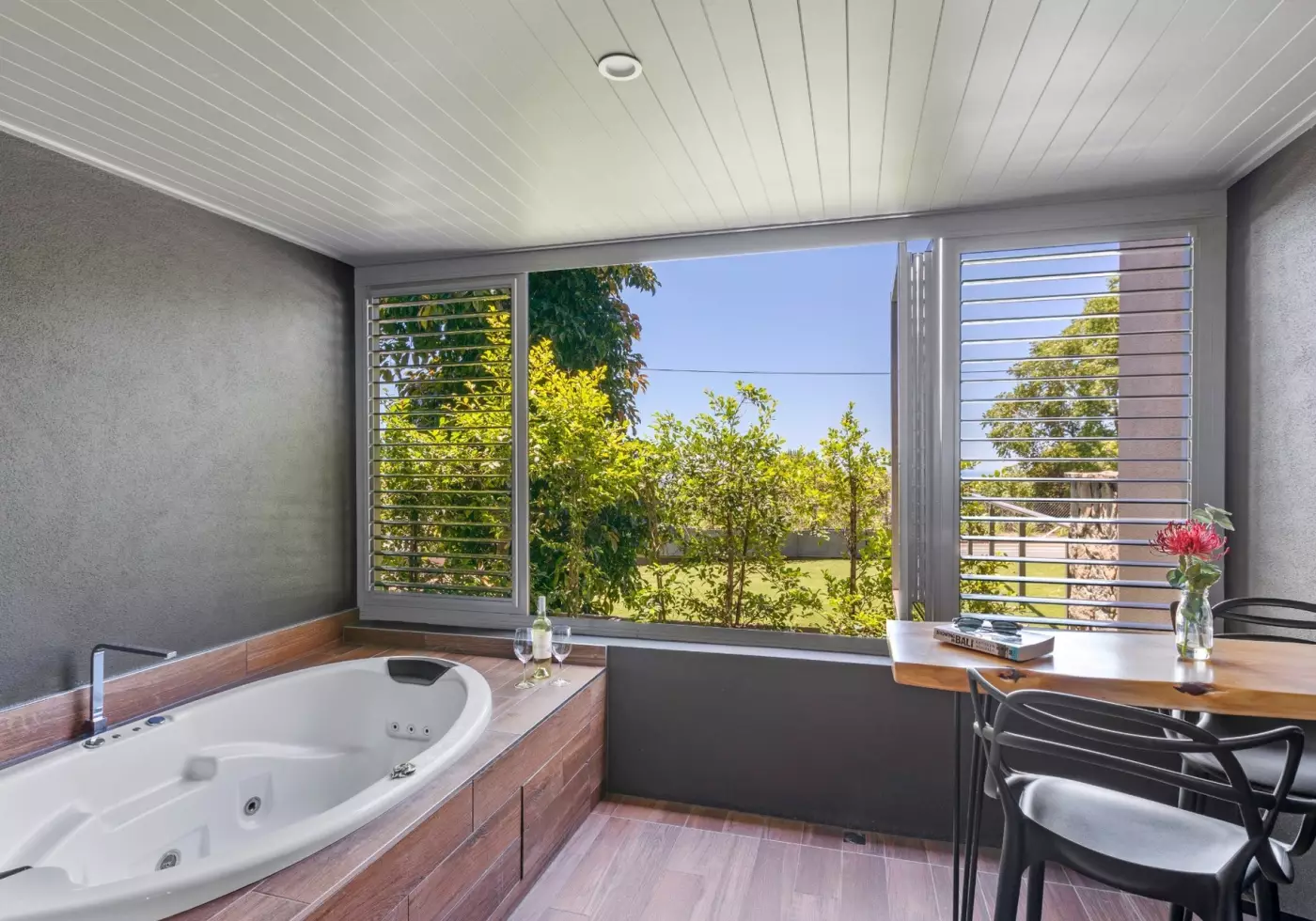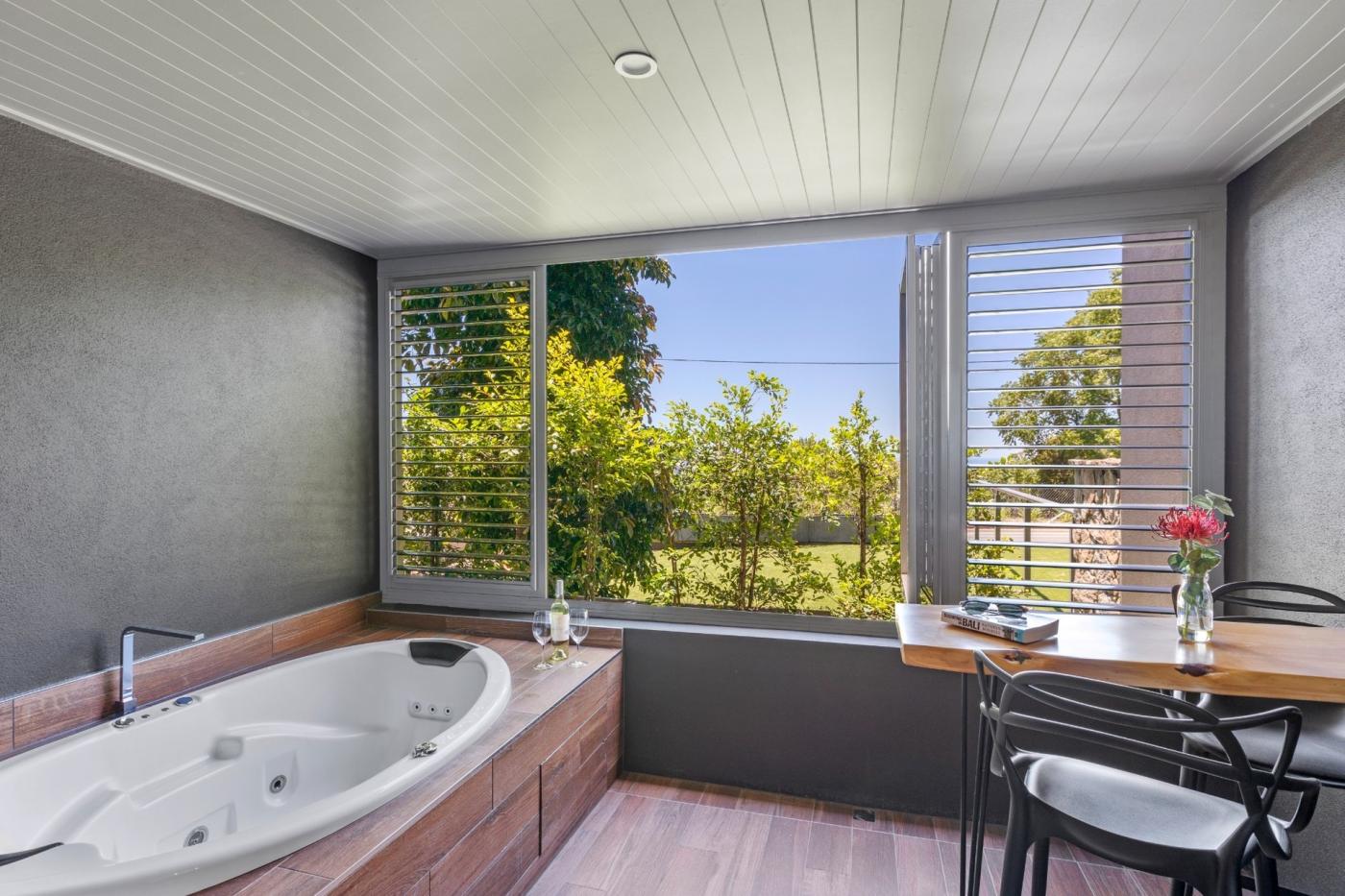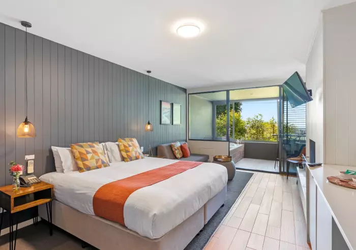 The studio features a contemporary open-plan layout with a king-size bed, spa-inspired ensuite, and functional benchtop for preparing the cup of tea or coffee. The private balcony invites guests to soak up Montville's cool mountain air and tranquil outlook, while the location ensures they're just moments from boutique shops, cafés, galleries, and scenic hinterland walks.