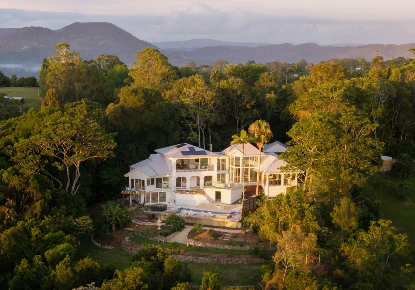 Tristan Allison from Property Today proudly presents The Med to market: A fully furnished & ready to move in Mediterranean-inspired high-end rebuild on 4.75 lush private acres, boasting a magnificent multi-level residence perfectly positioned on the site to maximise elevation, natural light, north-easterly aspect, privacy, and breathtaking 180° panoramic coastal vista sweeping from Sunshine Beach in the north to Coolum Beach in the south and across Lake Weyba in between.