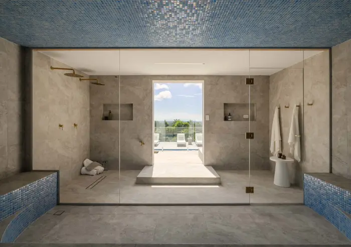 • 12-metre magnesium pool, commercial-grade 20-person steam room