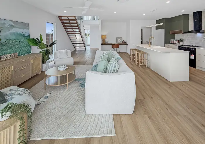 The ground floor is centred around a spacious open plan kitchen, living and dining area that feels generous without being oversized. The kitchen is practical and well appointed, flowing seamlessly into the main living zone and out to the private entertaining area and plunge pool. It is a layout that works equally well for everyday family living or having friends over on the weekend. A second living area provides valuable separation, ideal for families with children, guests staying over or those working from home.