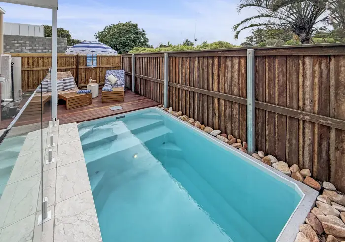 Set on an end lot with neighbours on only one side, the home enjoys excellent natural light throughout the day and a desirable north east aspect with water views. The orientation captures morning sun and coastal breezes, making the outdoor spaces particularly enjoyable year round.