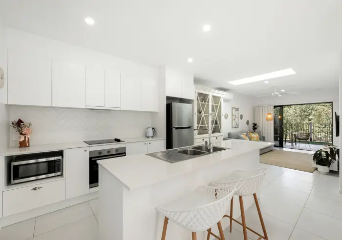 With three spacious bedrooms, high ceilings and front and centre view of rainforest from most rooms, this residence is designed to nurture the bonds of family.