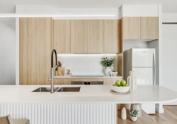 At the centre of the home, the kitchen connects seamlessly with the living and dining, flowing out to a covered alfresco and mineral plunge pool. A space that works just as well for entertaining as it does for a quiet afternoon.